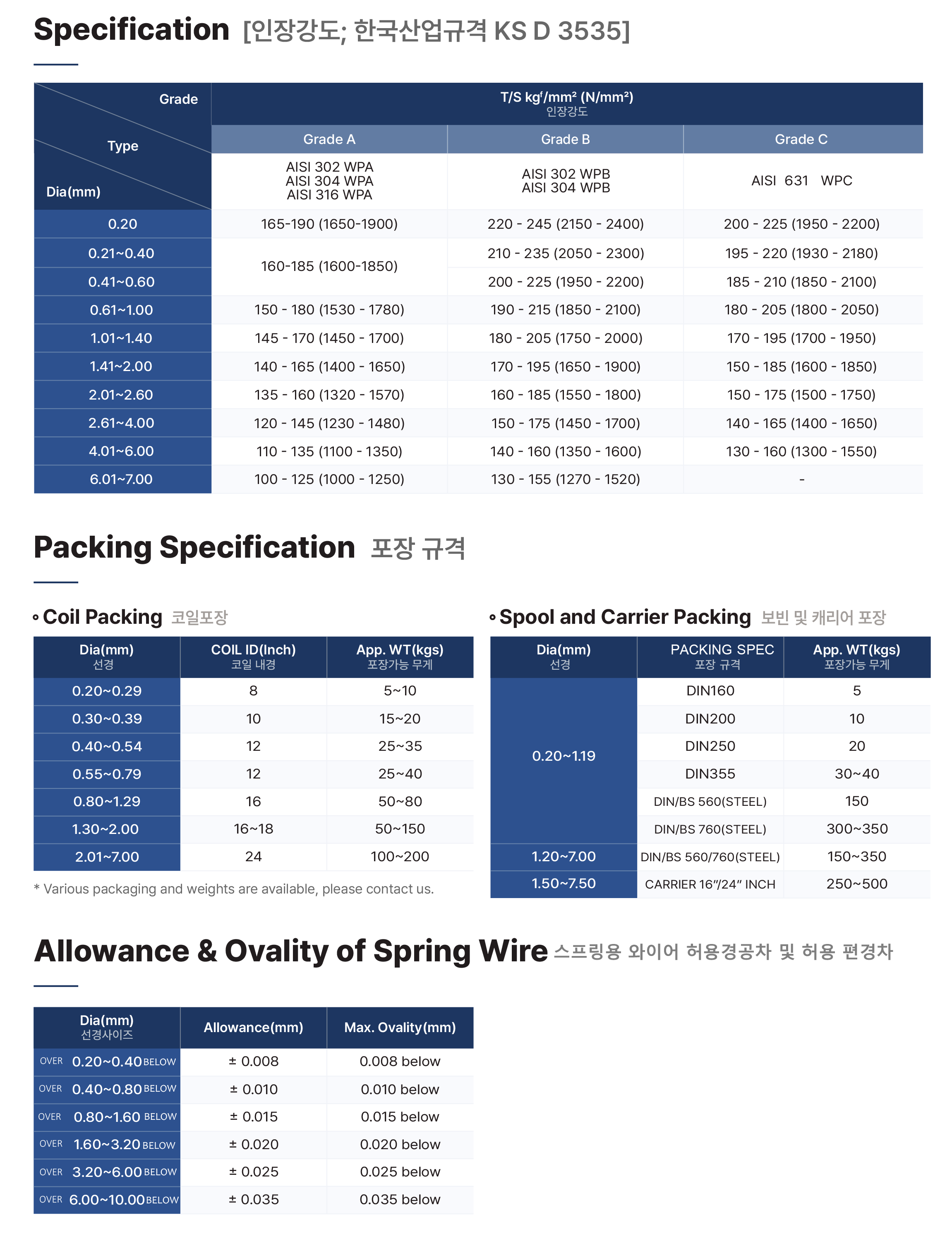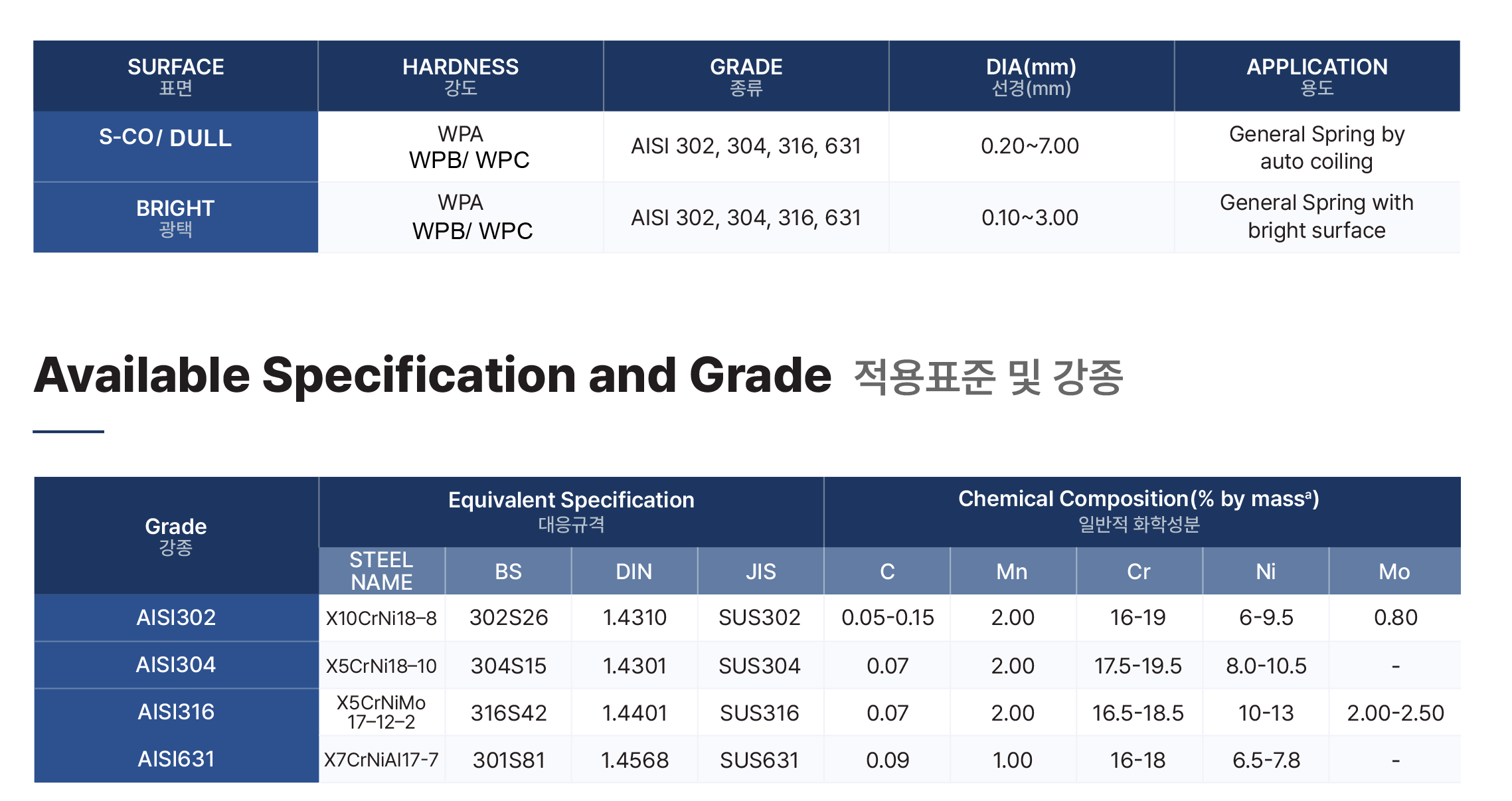 [대표 강종 ] 302, 304, 316, 631J1 등